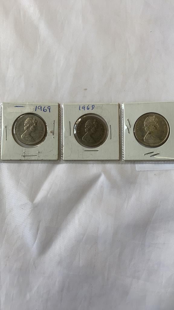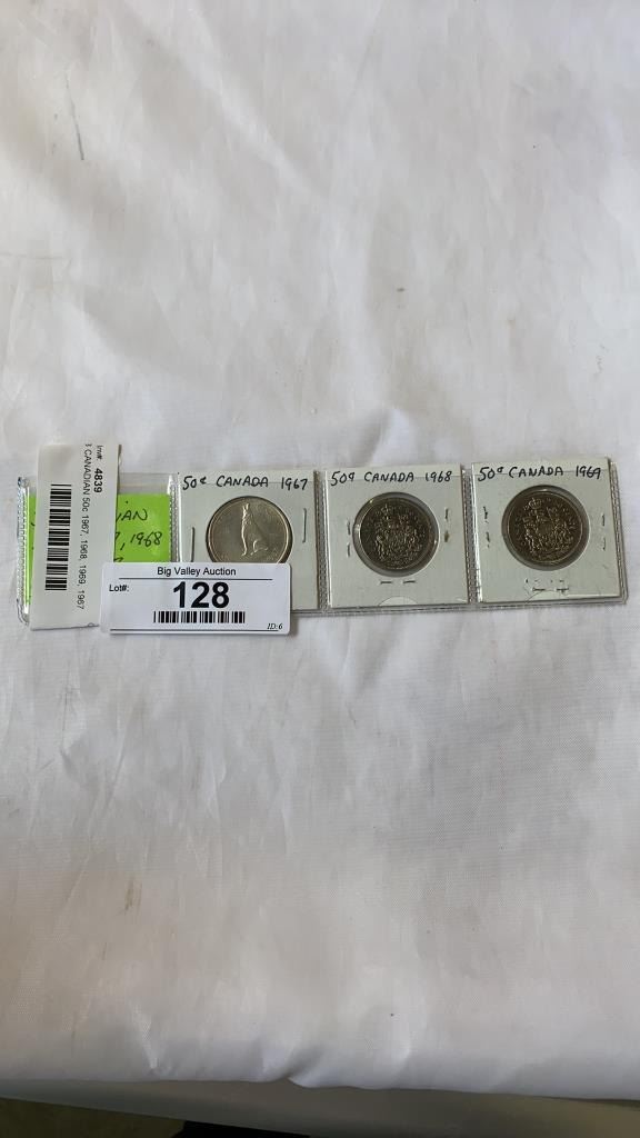 3 CANADIAN 50c 1967, 1968, 1969, 1967 CENTENNIAL .800 SILVER