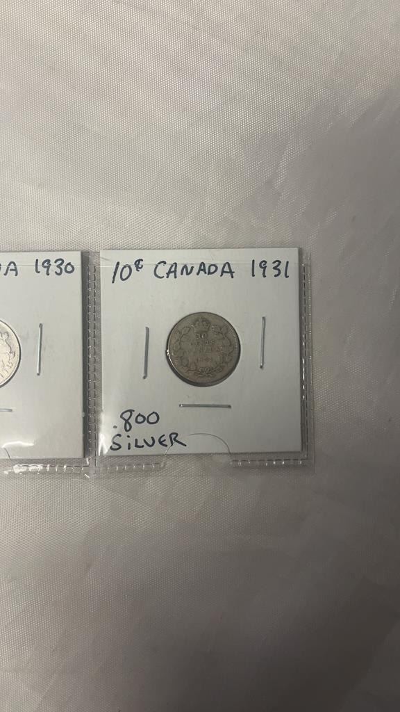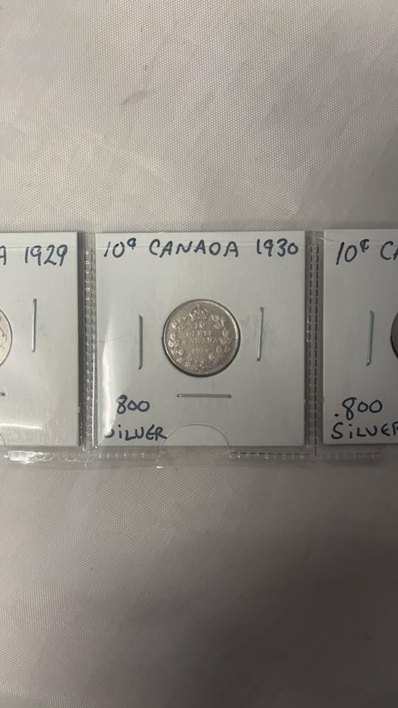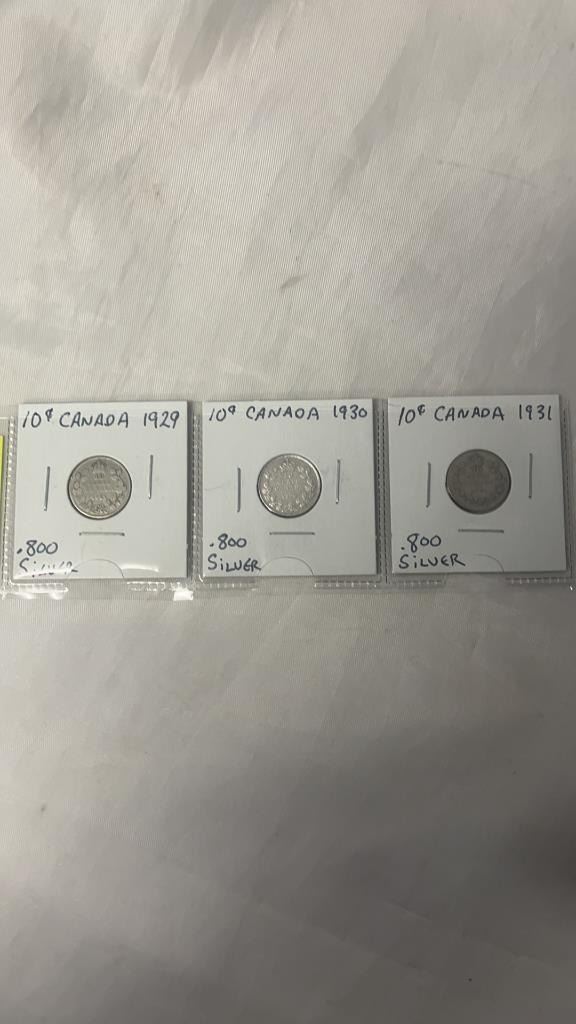 3 CANADIAN DIMES - LOW MINTAGE - 1929, 1930, 1931 (.800 SILVER)