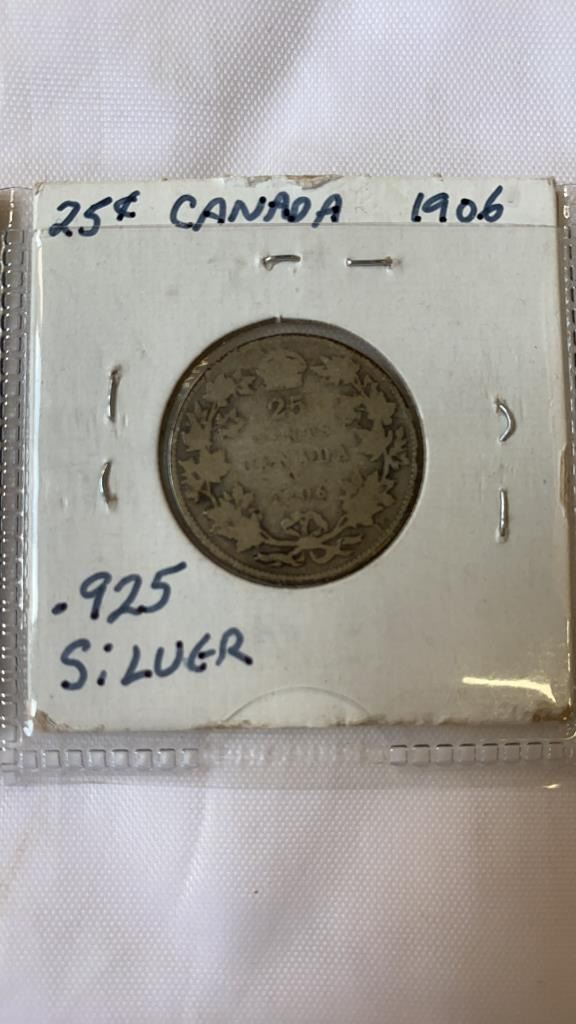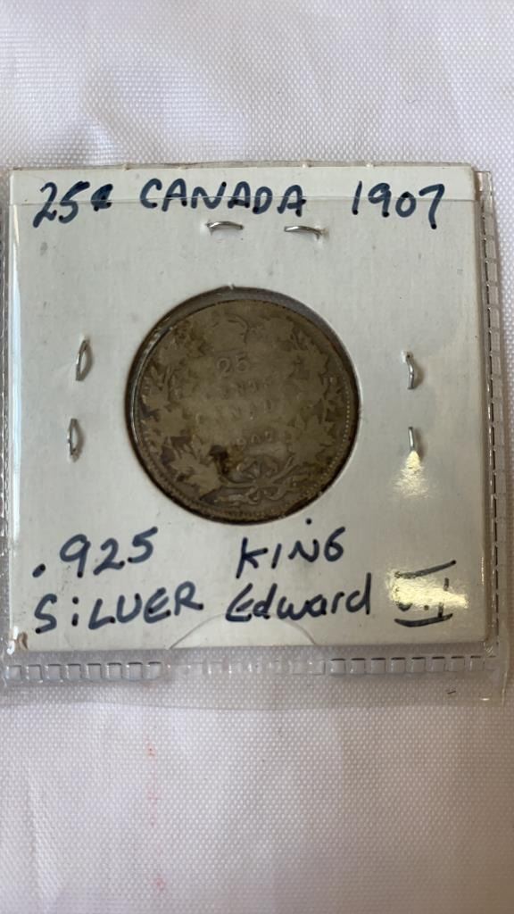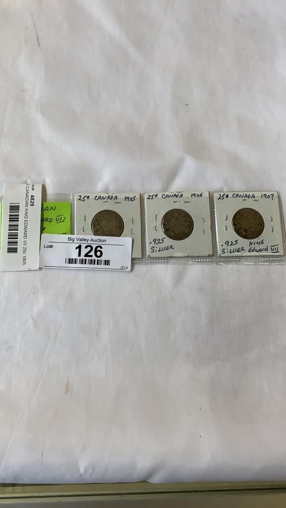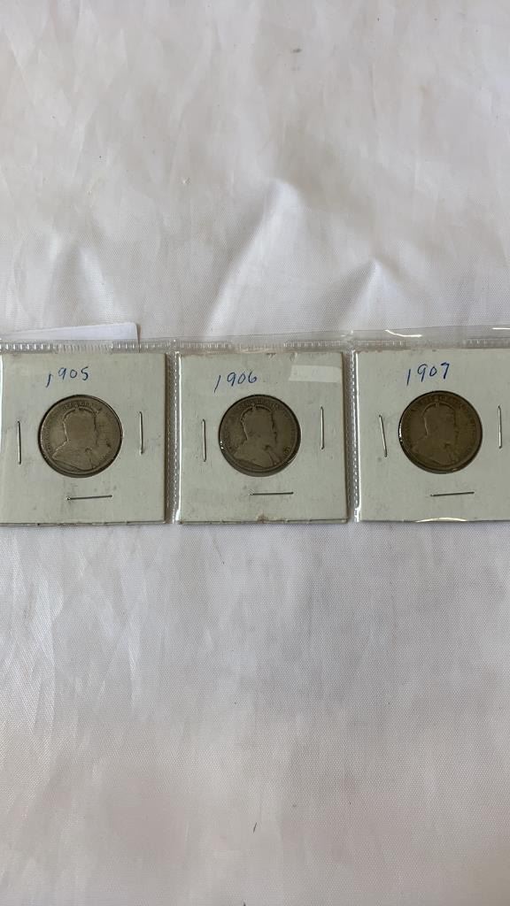 3 CANADIAN KING EDWARD VII 25c 1905, 1906, 1907, .925 SILVER
