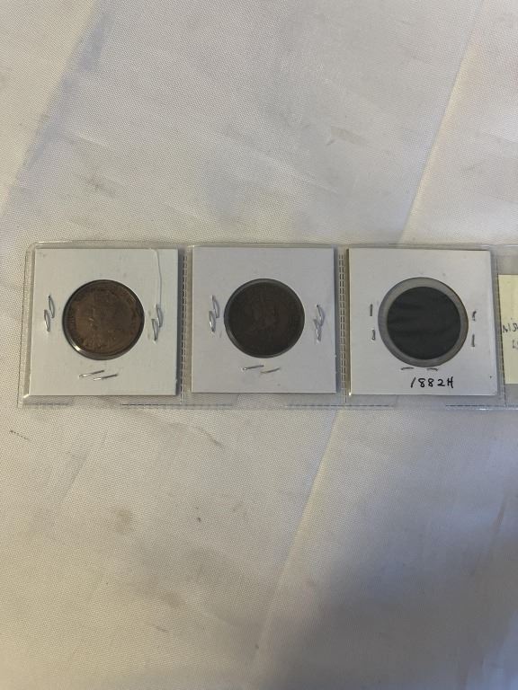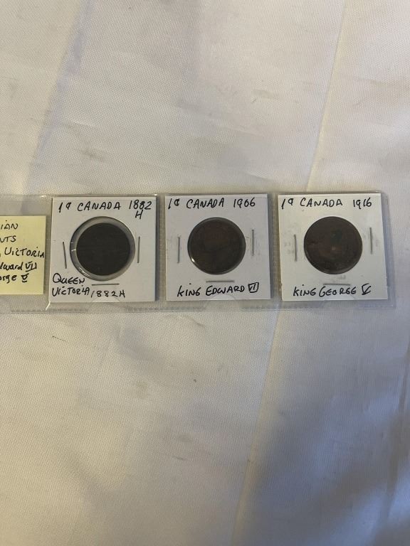 3 CANADIAN LARGE CENTS 1882H QUEEN VICTORIA, 1906 KING EDWARD VII, 1916 KING GEORGE V