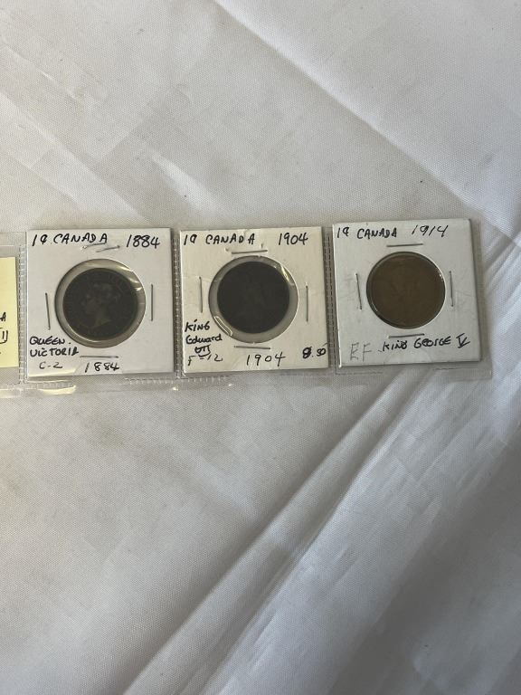 3 CANADIAN LARGE CENTS 1884 QUEEN VICTORIA, 1904 KING EDWARD VII, 1914 KING GEORGE V