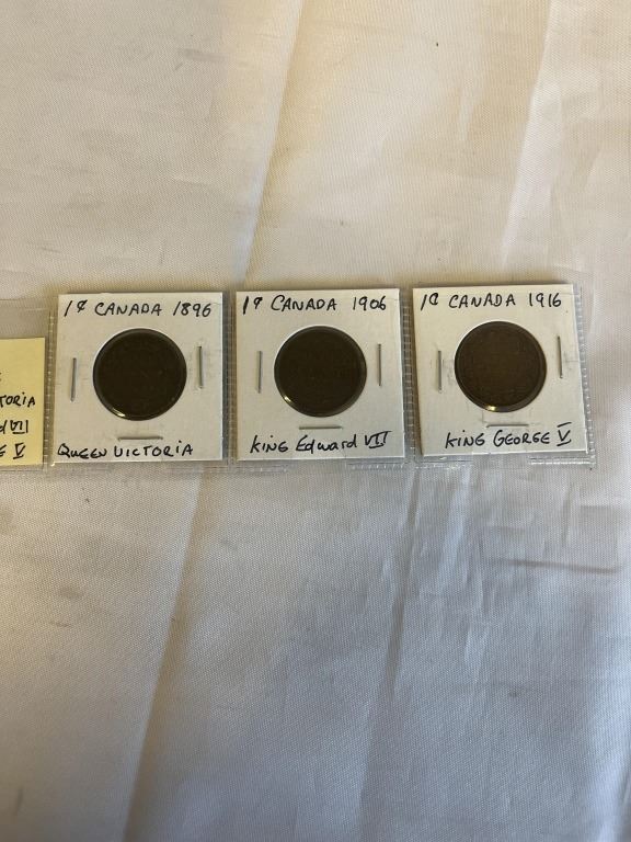 3 CANADIAN LARGE CENTS 1896 QUEEN VICTORIA, 1906 KING EDWARD VII, 1916 KING GEORGE V