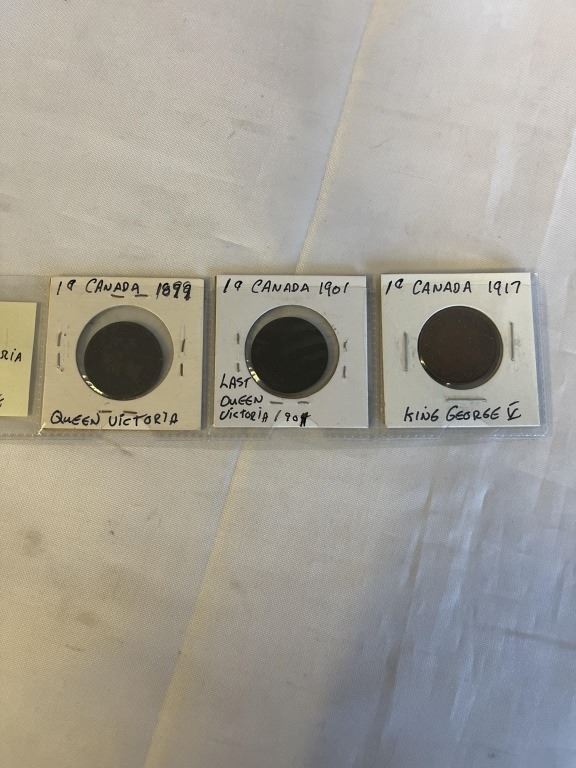 3 CANADIAN LARGE CENTS 1899 QUEEN VICTORIA, 1901 LARGE QUEEN VICTORIA CENT, 1917 KING GEORGE V
