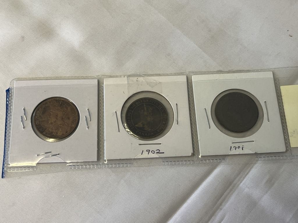 3 CANADIAN LARGE CENTS 1901, 1902, 1911