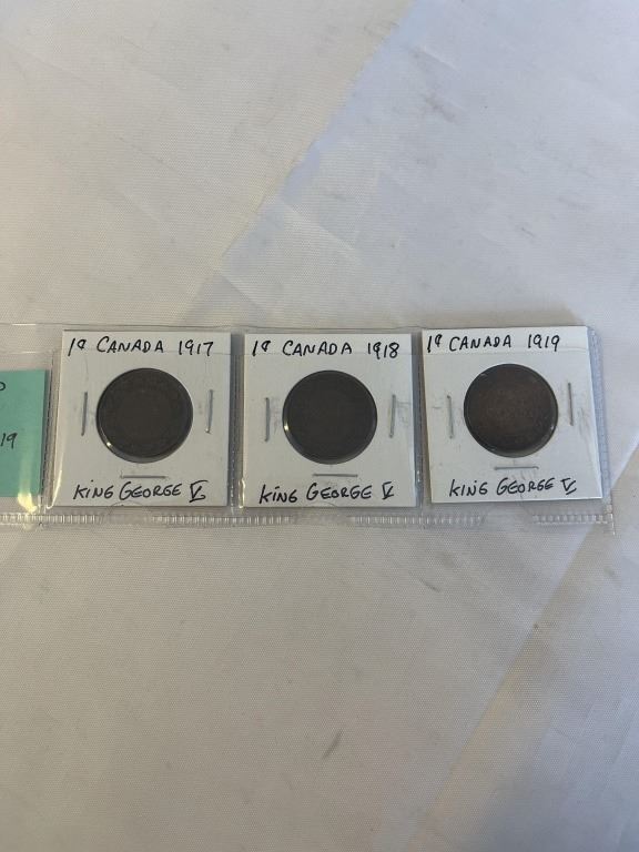 3 CANADIAN LARGE CENTS 1917, 1918, 1919 GEORGE V