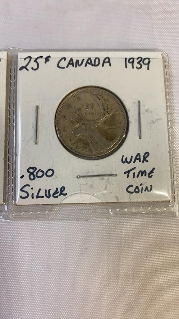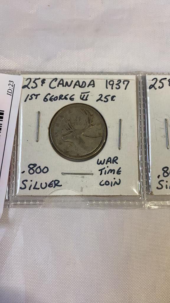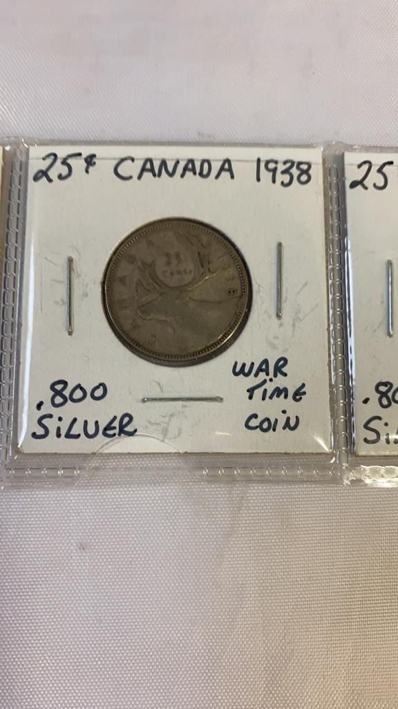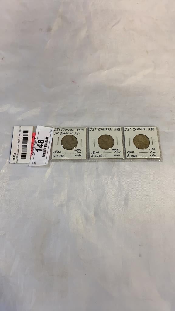 3 CANADIAN LOW MINTAGE WARTIME 25 CENT 1937-1939 .800 SILVER