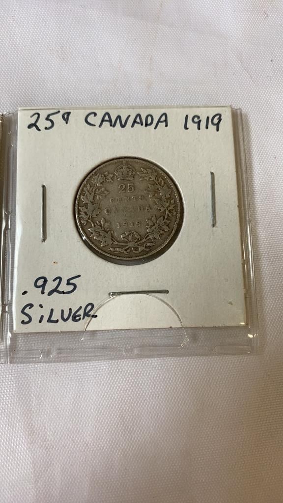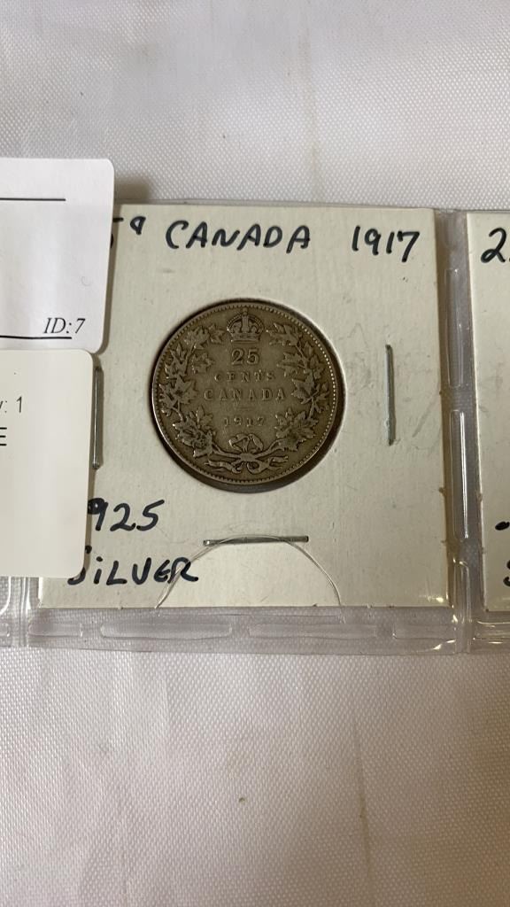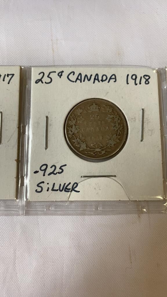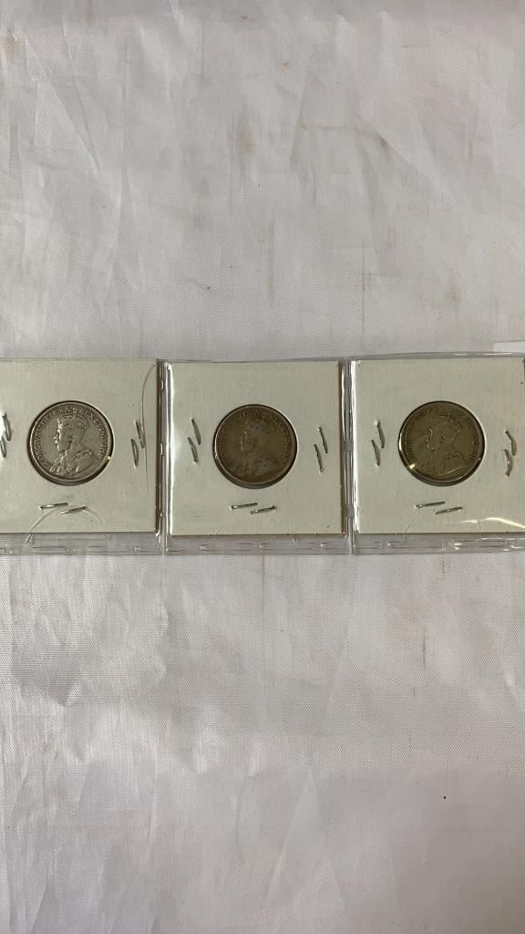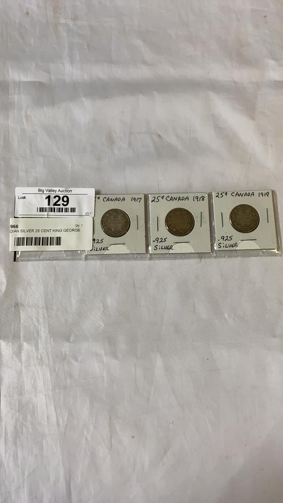 3 CANADIAN SILVER 25 CENT KING GEORGE V 1917, 1918, 1919 925 SILVER