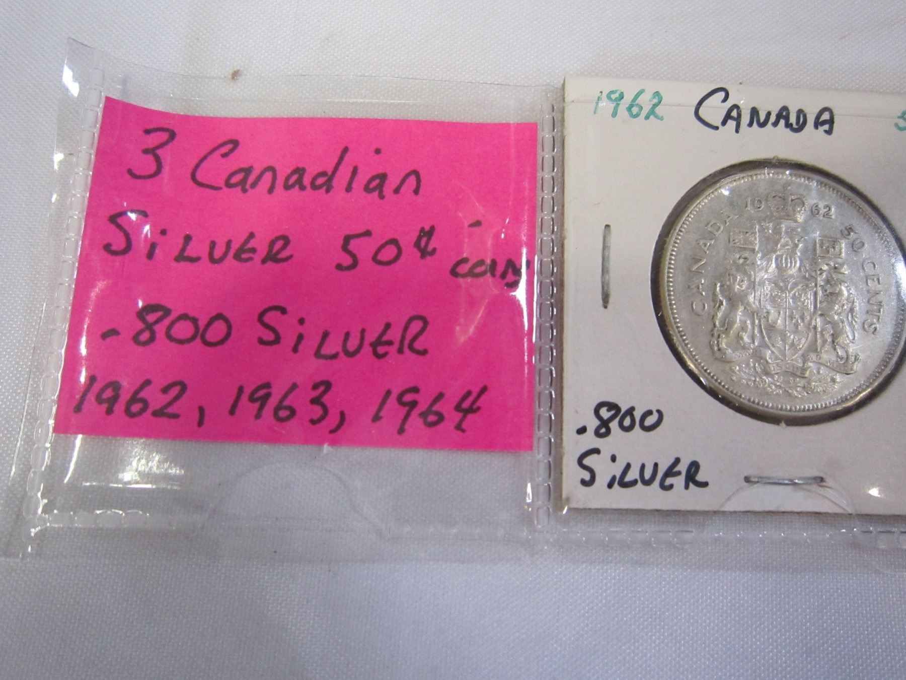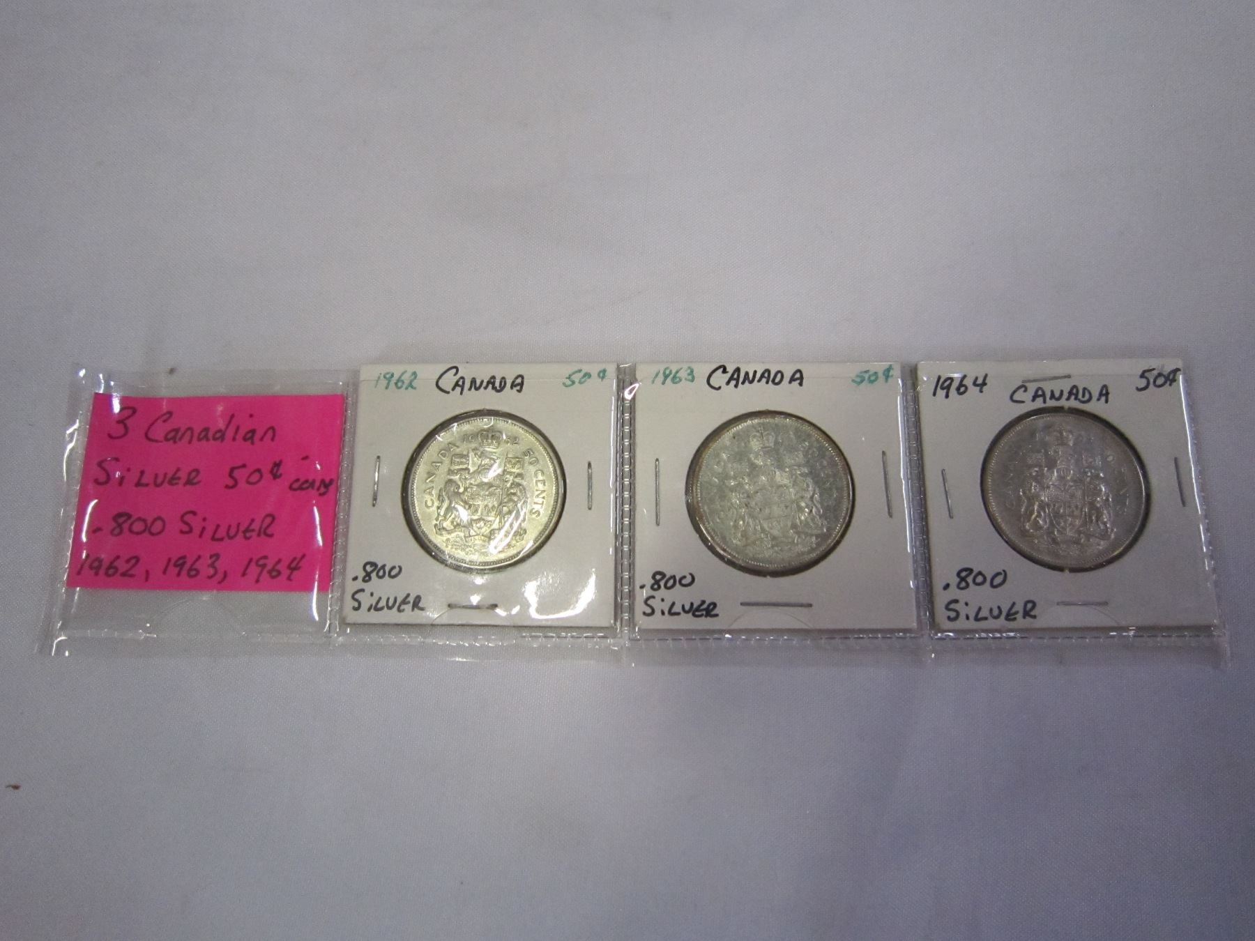 3 CANADIAN SILVER 50C COINS .800 SILVER 1962, 1963, 1964