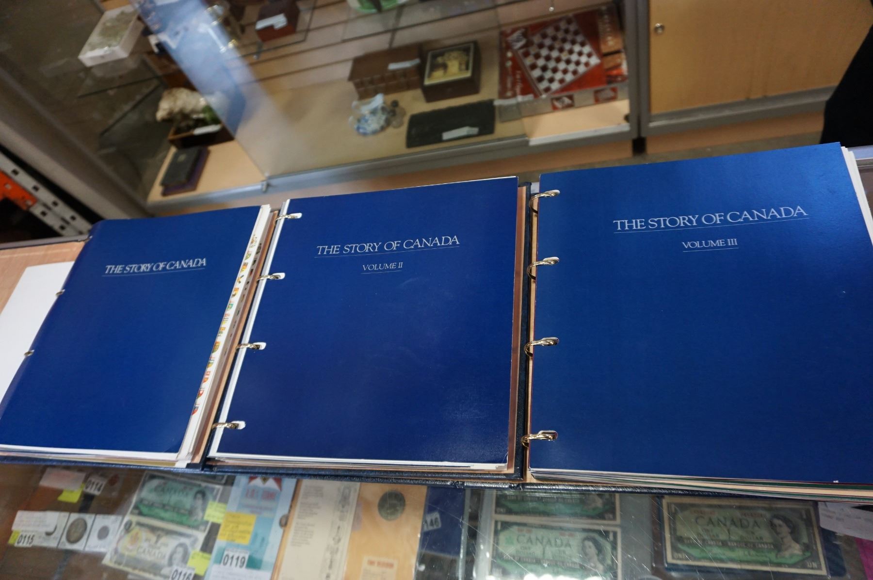 3 COMPLETE STAMP BOOKS STORY OF CANADA 1,2,3 AND STAMPS INCLUDED