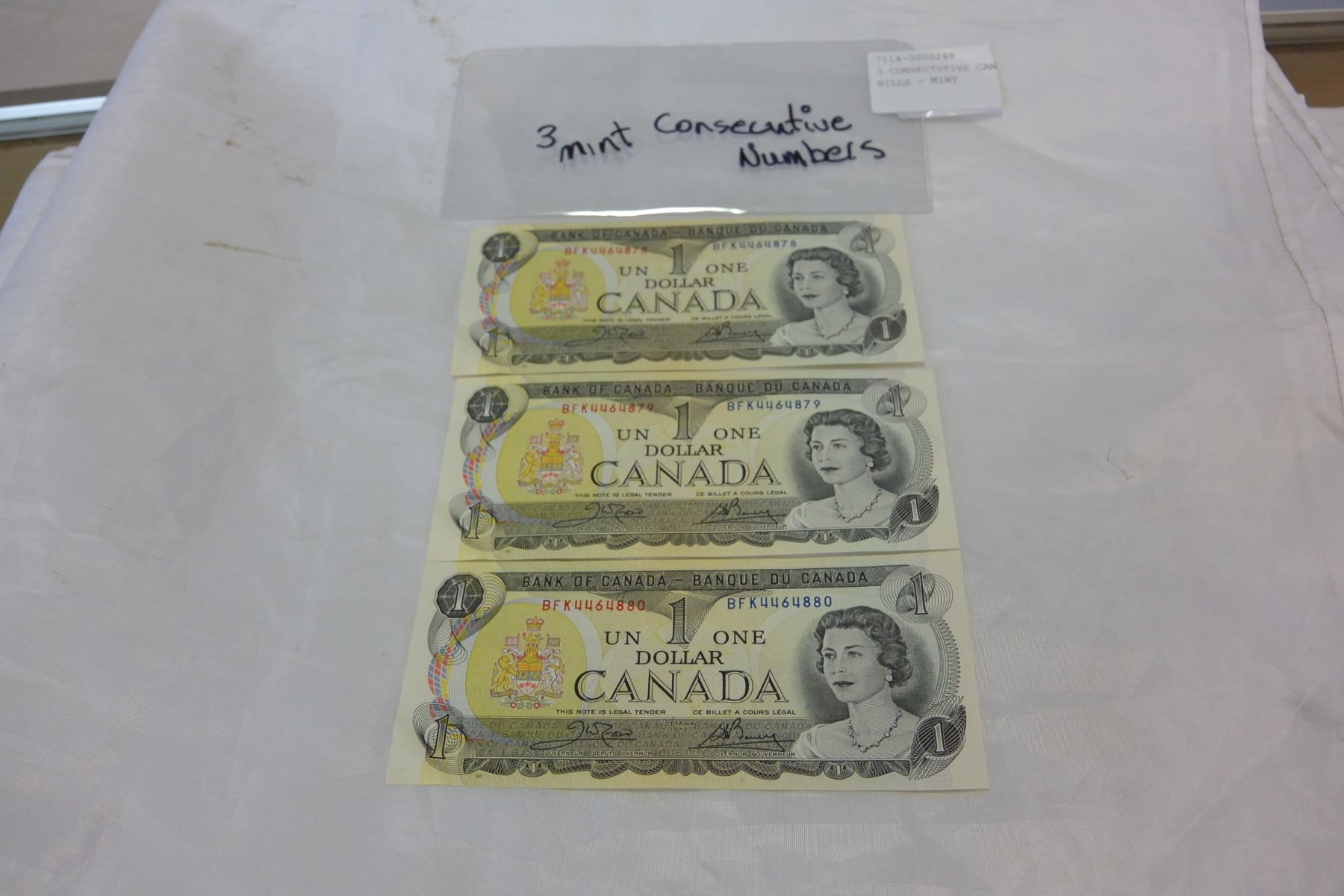 3 CONSECTUTIVE CANADIAN DOLLAR BILLS - MINT