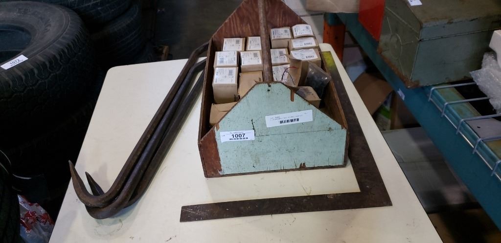 3 CROWBARS, TRAY OF WALL SWITCH SENSORS AND POWER PACKS