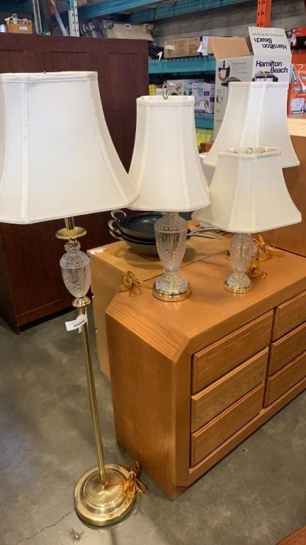 3 CRYSTAL TABLE LAMPS AND FLOOR LAMP