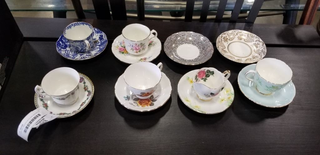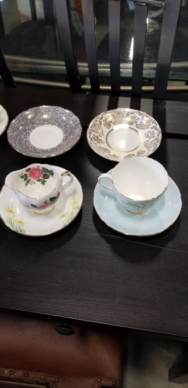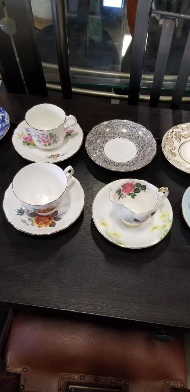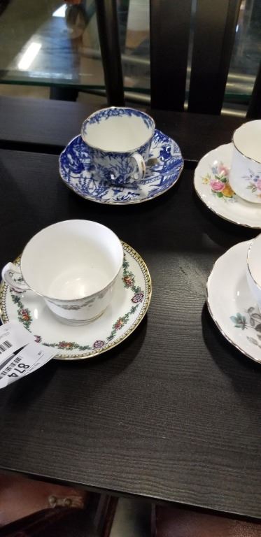 3 CUP AND SAUCER SETS AND ASSORTED CUPS AND SAUCERS NOT MATCHING