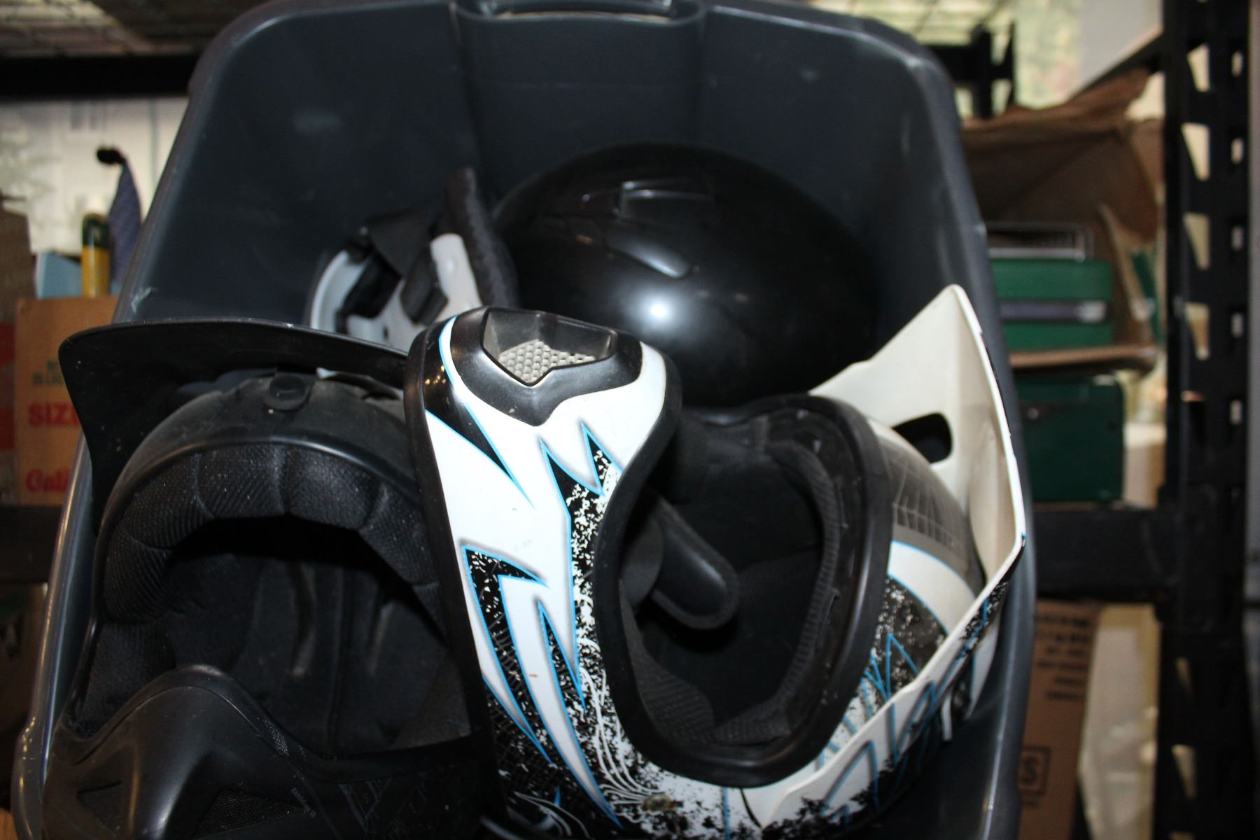 3 DIRTBIKE HELMETS AND FOOTBALL PADS