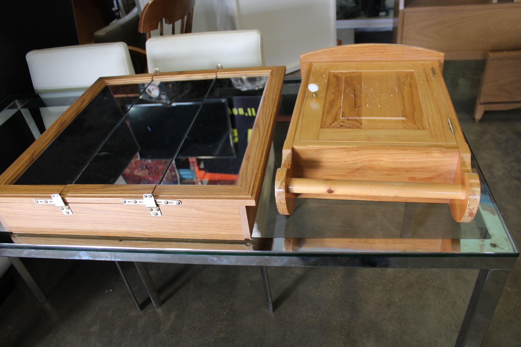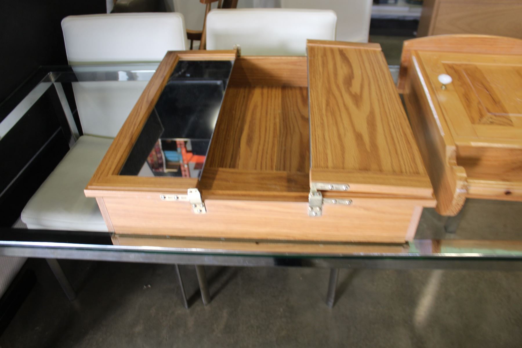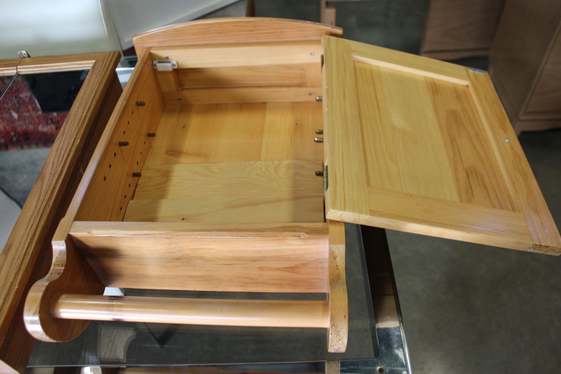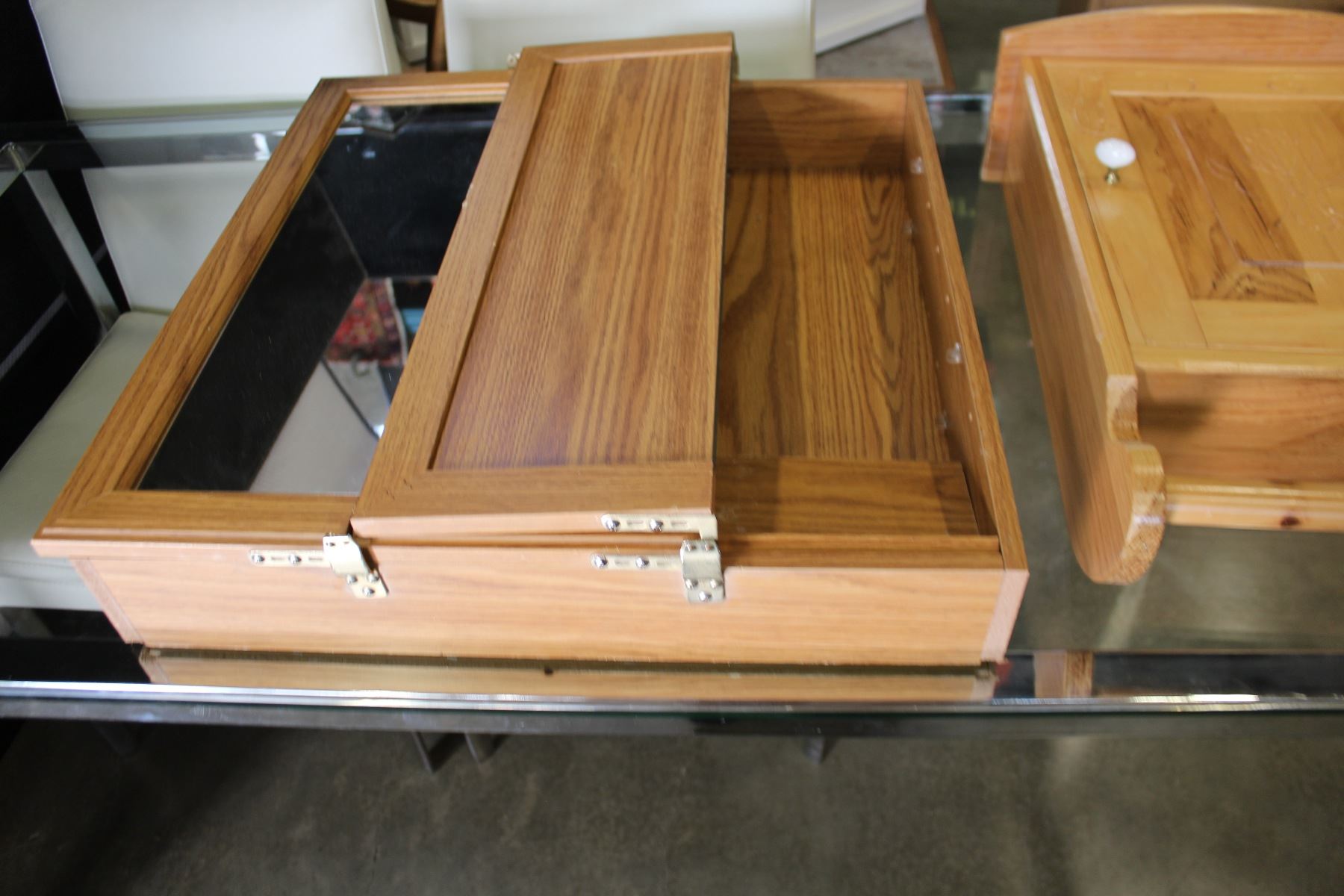 3 DOOR MIRRORED MEDICINE CABINET AND PINE 1 DOOR CABINET