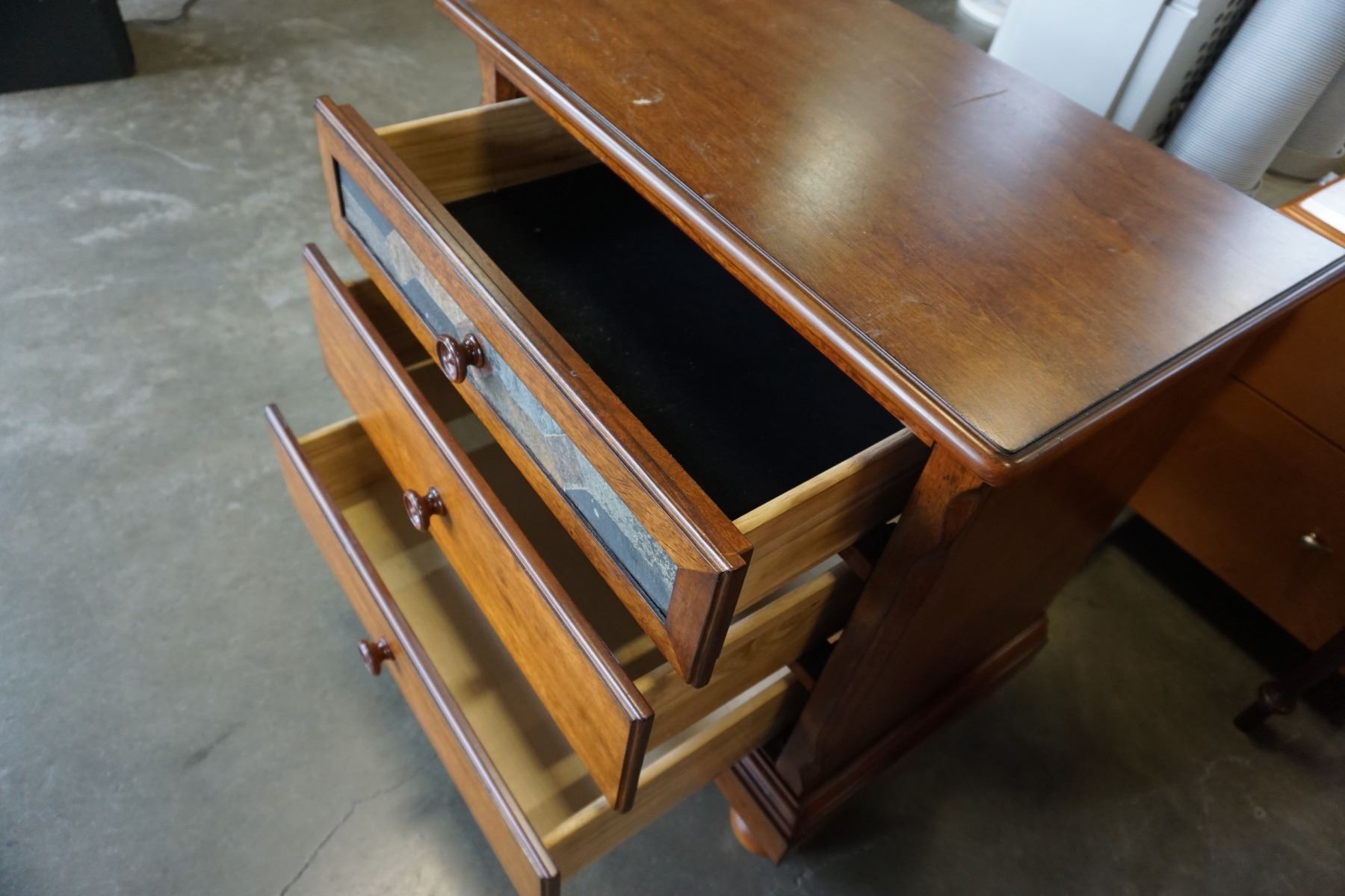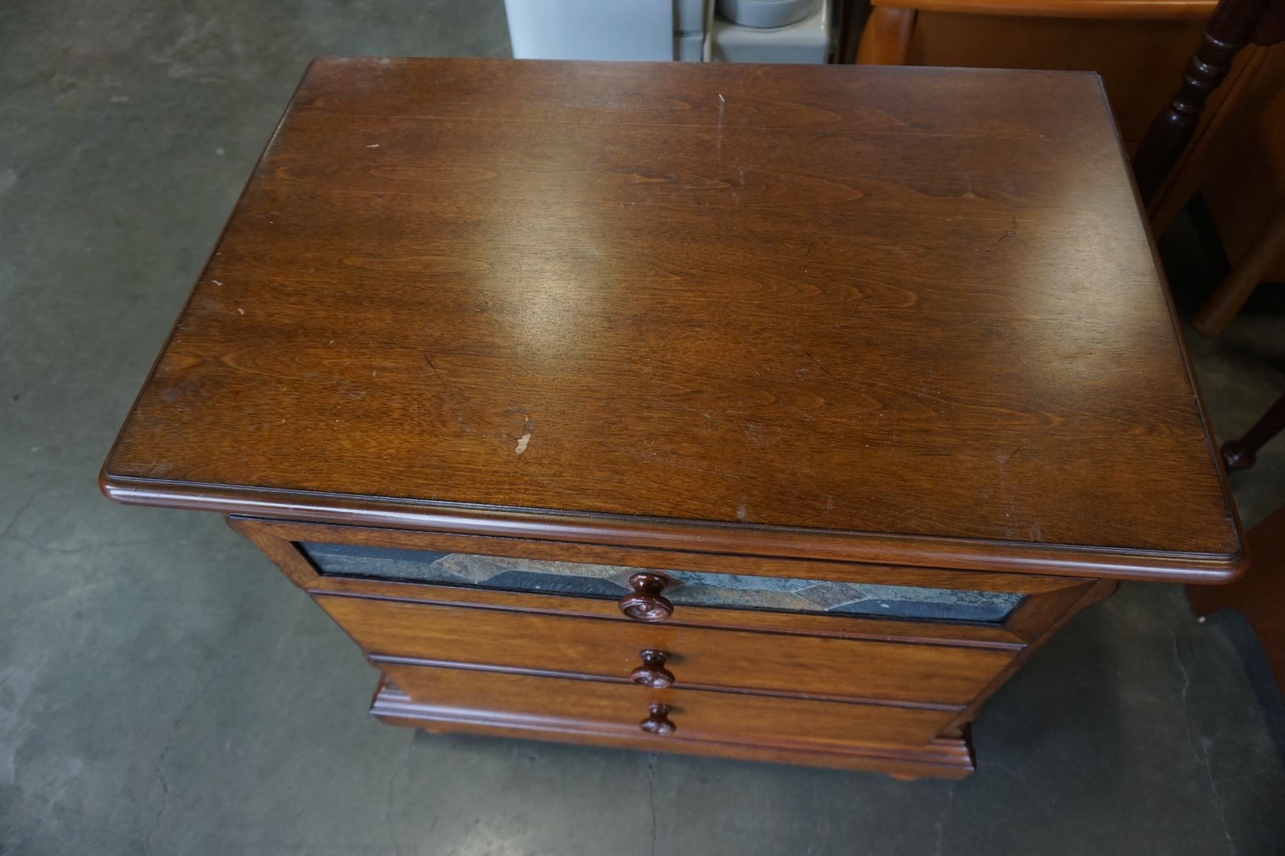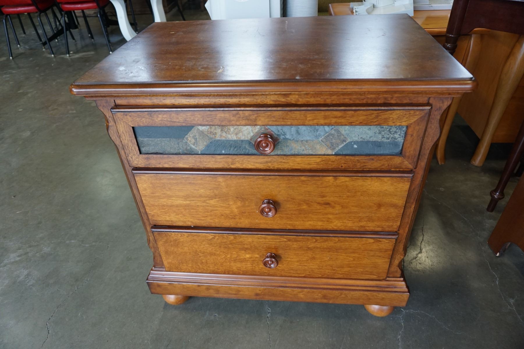 3 DRAWER NIGHTSTAND W/ STONE IN LAY DOOR