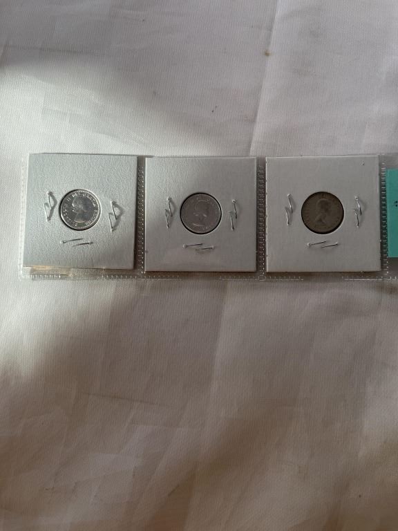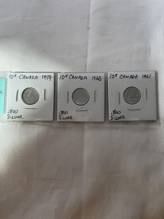 3 EARLY QUEEN ELIZABETH II SILVER DIMES 1959, 1960, 1961 .800 SILVER