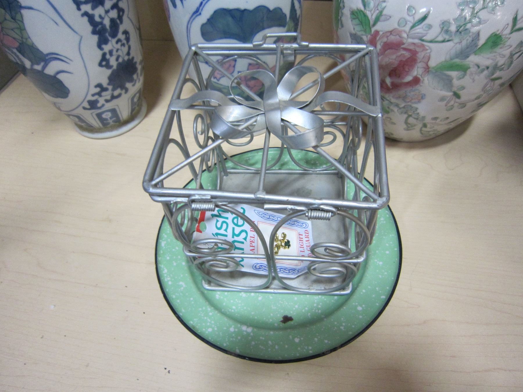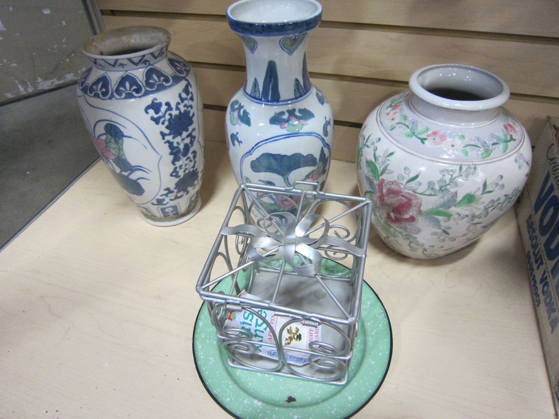 3 EASTERN VASES AND ENAMEL PLATE WITH METAL PRESENT BOX