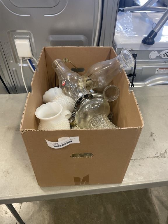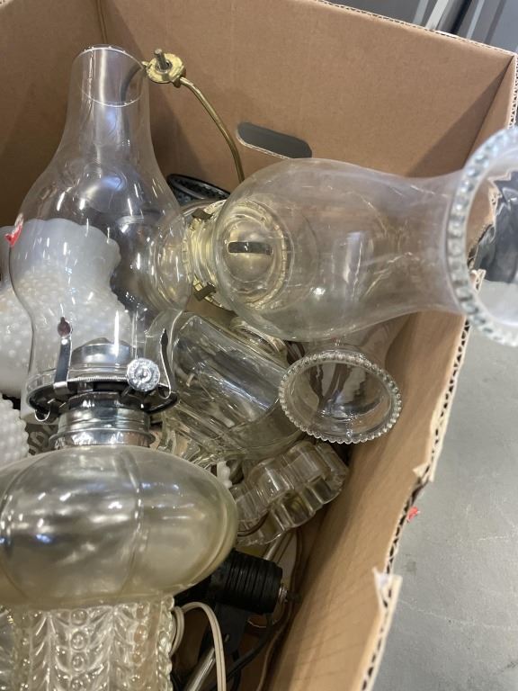 3 ELECTRIC AND 2 KEROSENE VINTAGE MILK GLASS AND CUT GLASS LAMPS
