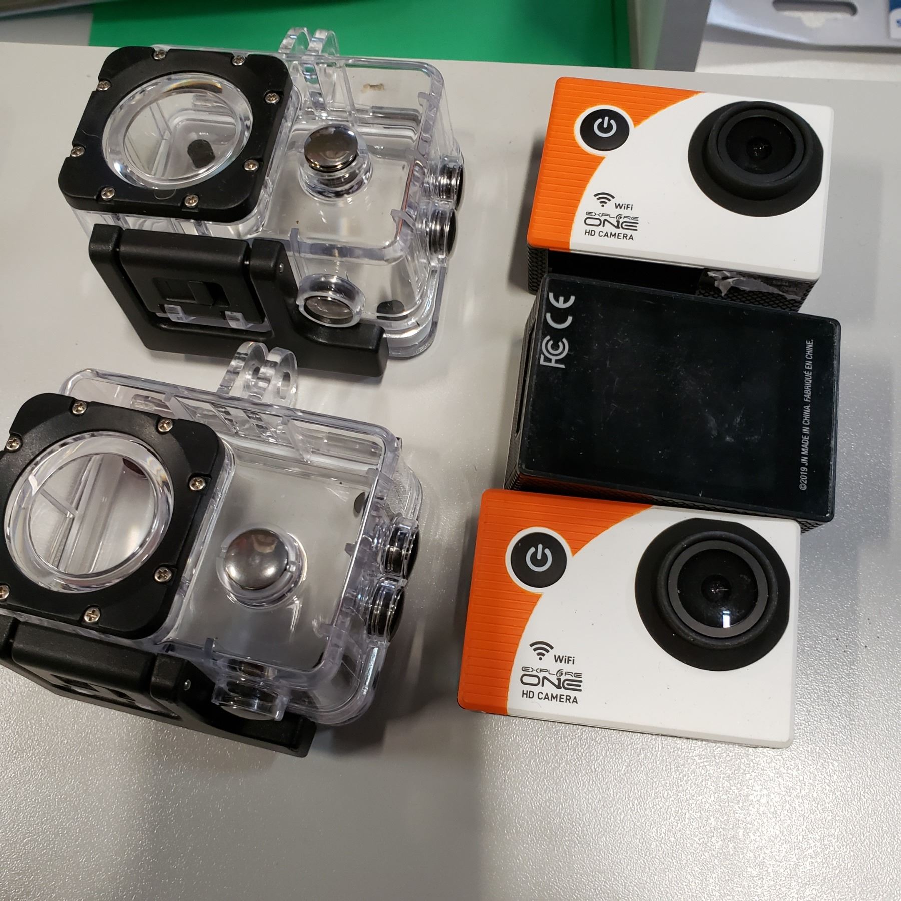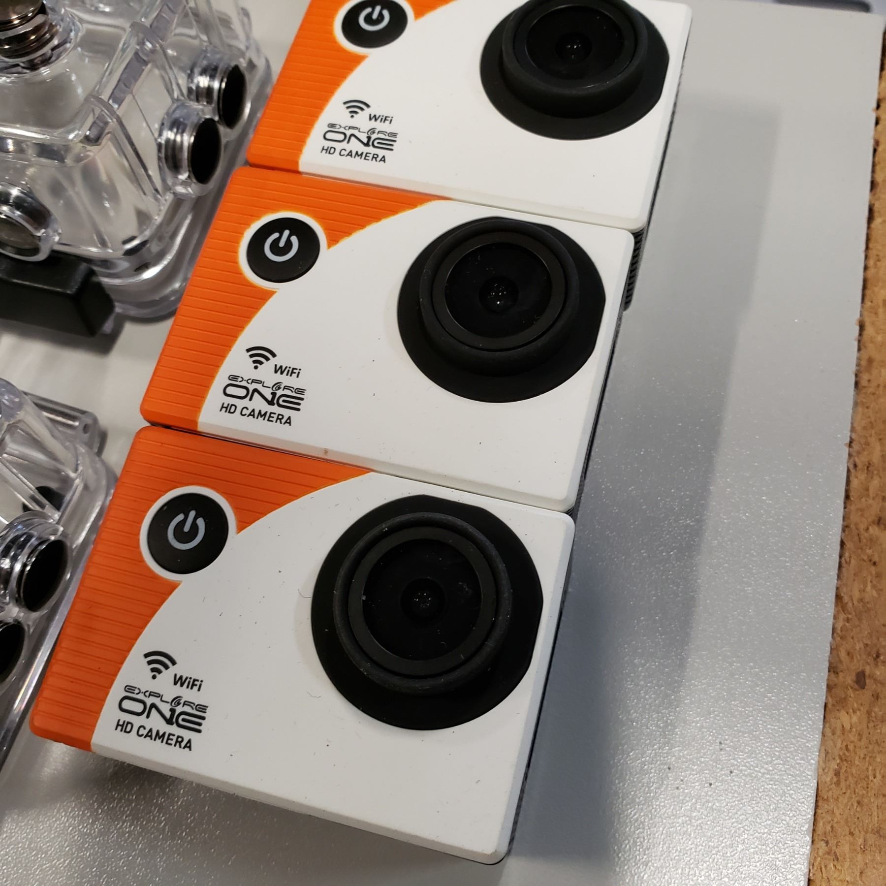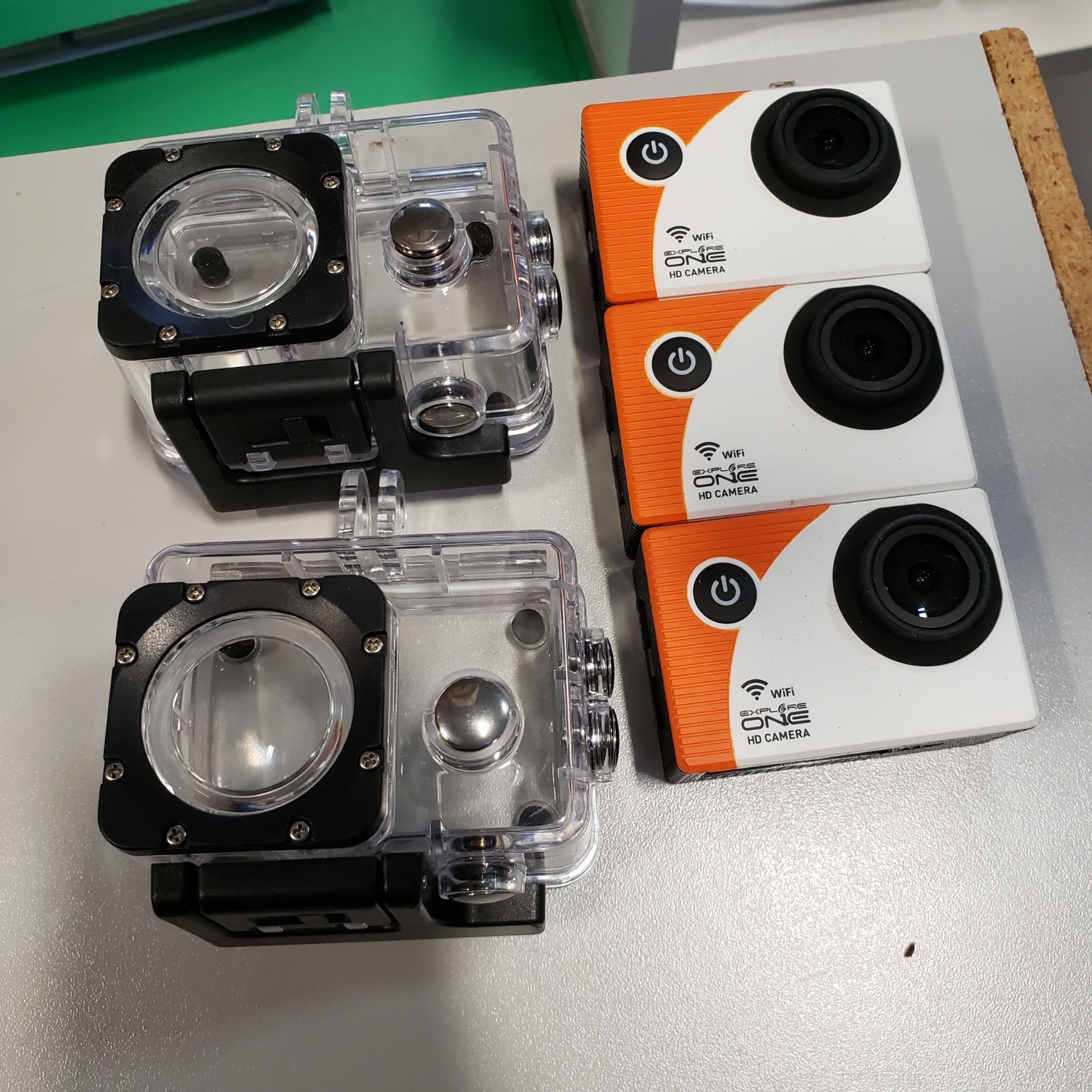 3 EXPLORE ONE HD WIFI CAMERAS AND TWO GOPRO WATERPROOF CASES NO BATTERIES