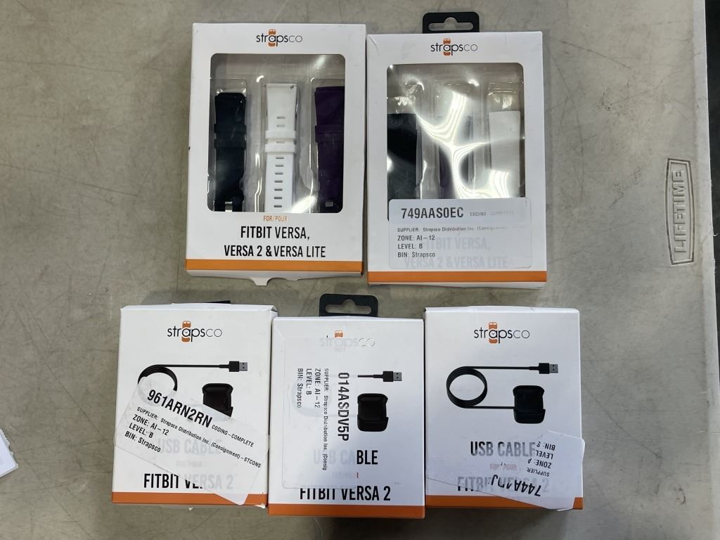 3 FITBIT VERSA CHARGERS AND 2 3-PACKS OF FITRBIT VERSA, VERSA 2 AND VERSA LITE BANDS