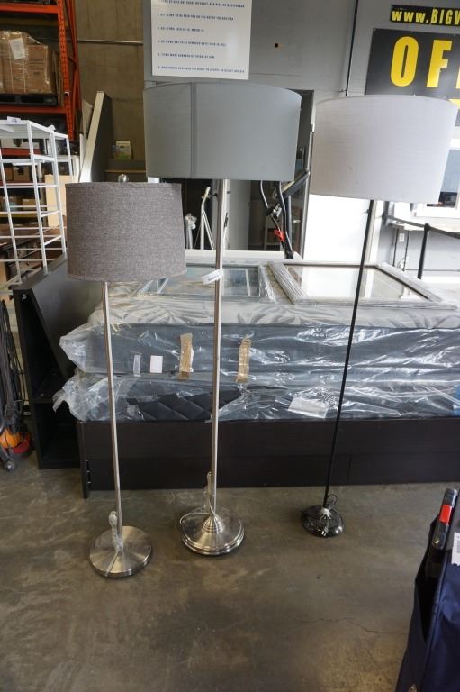 3 FLOOR LAMPS - ONE BLACK, TWO BRUSHED METAL