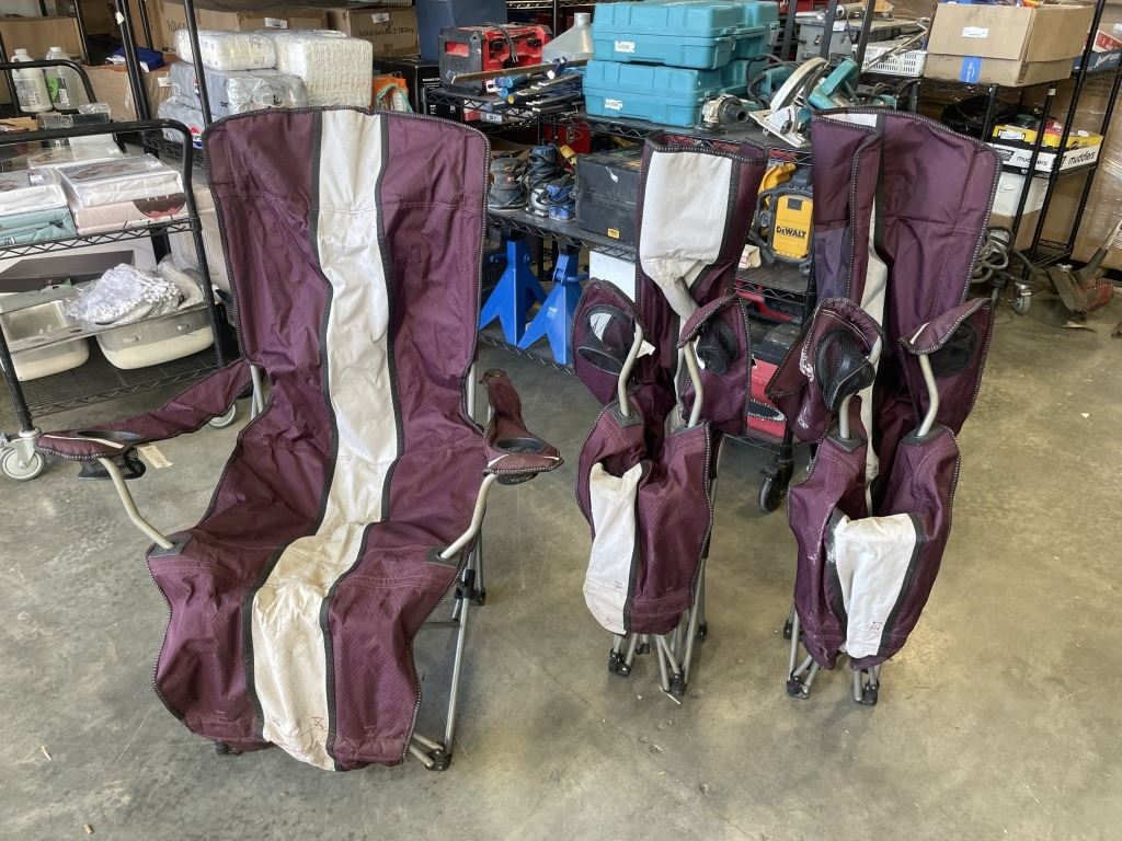 3 FOLDING CAMP CHAIRS WITH LEG RESTS