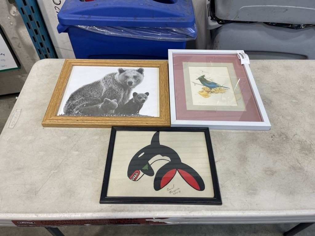 3 FRAMED ANIMAL PRINTS - 2 SIGNED