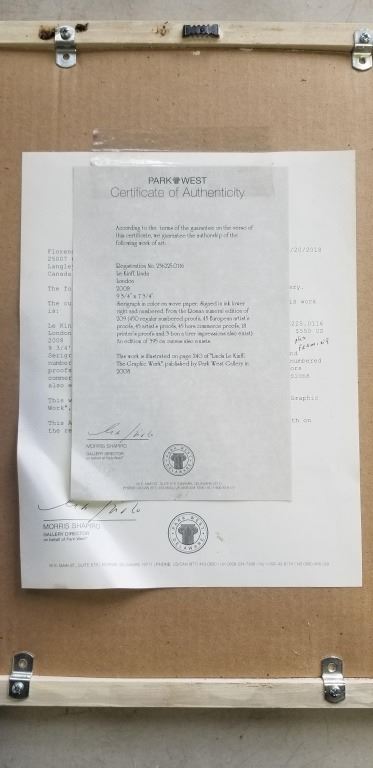 3 FRAMED PRINTS - ALL W/ PARK WEST CERTIFICATES