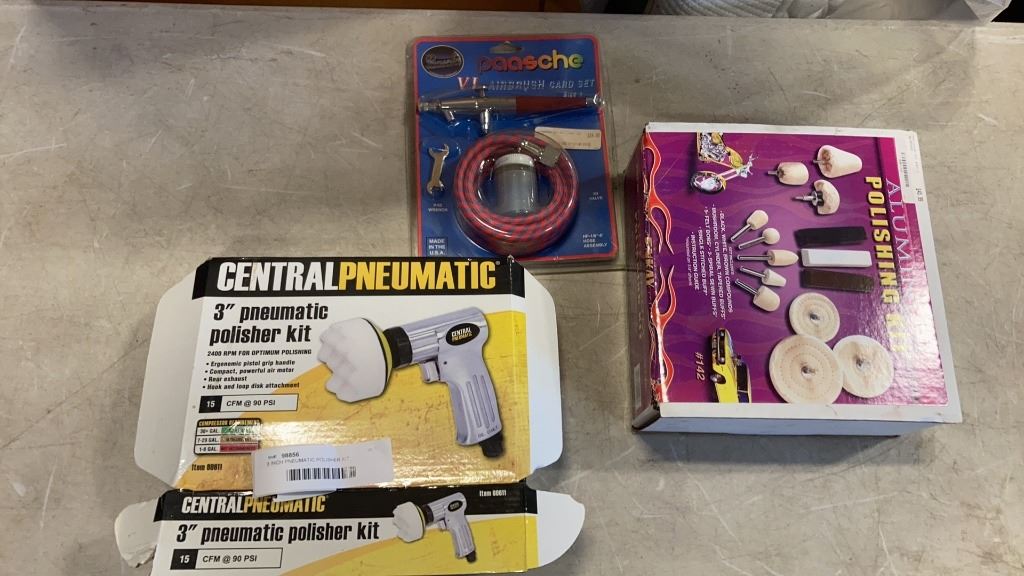 3 INCH PNEUMATIC POLISHER KIT, ALUMINUM POLISHING KIT AND AIR BRUSH