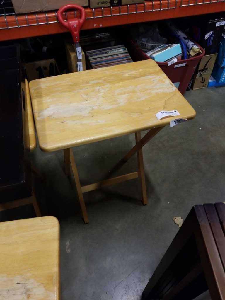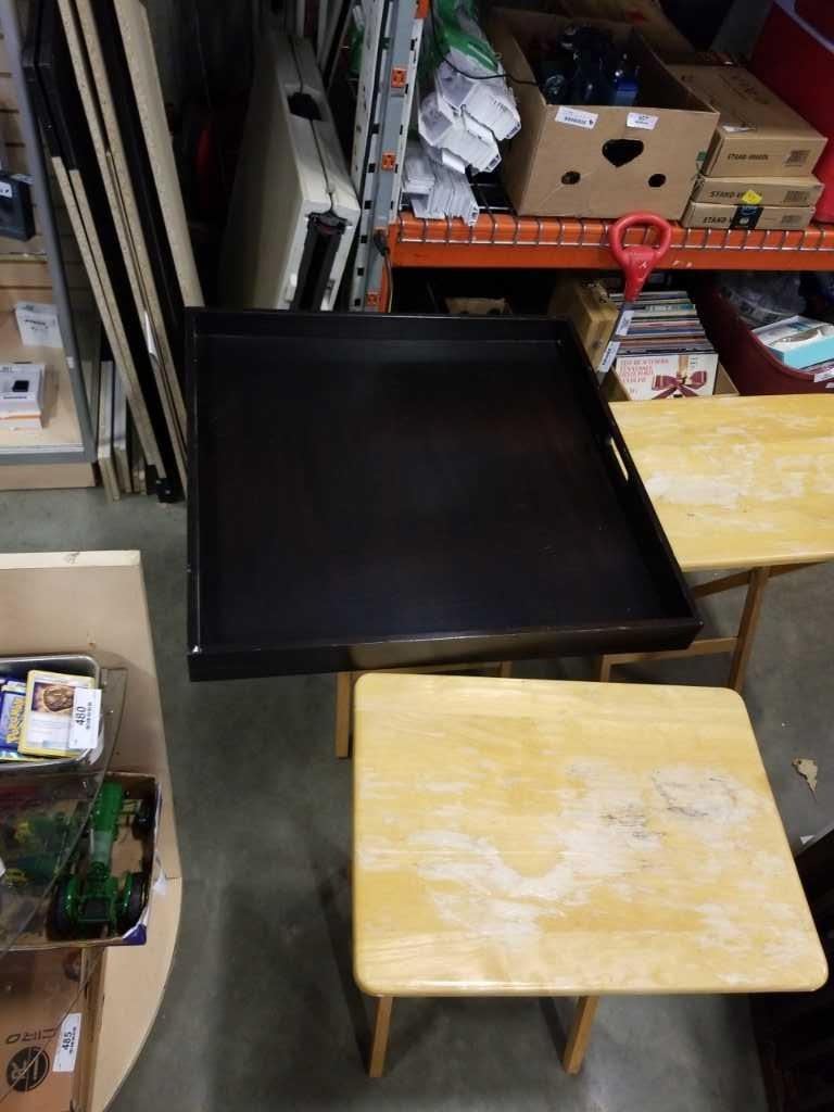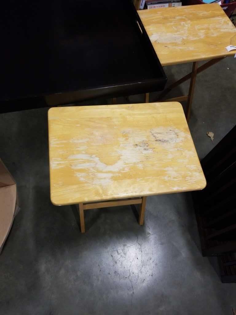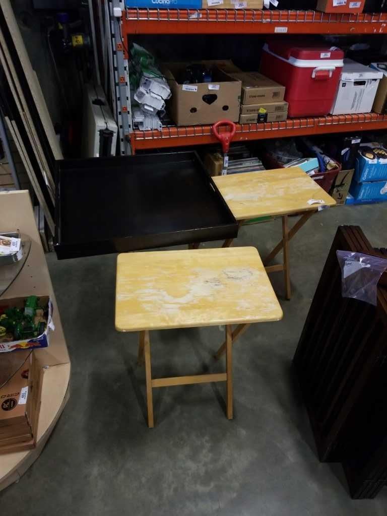 3 MAPLE TV TRAYS, WITH WOODEN TRAY