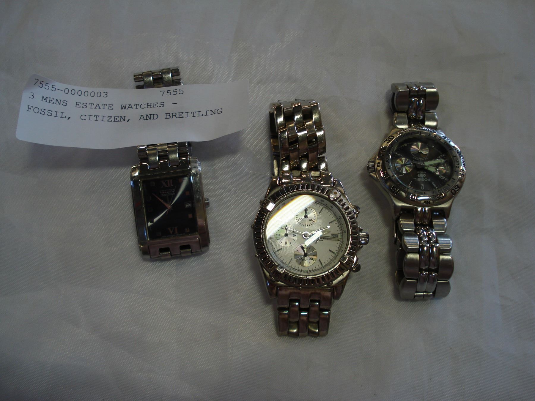 3 MENS ESTATE WATCHES - FOSSIL, CITIZEN, AND BREITLING