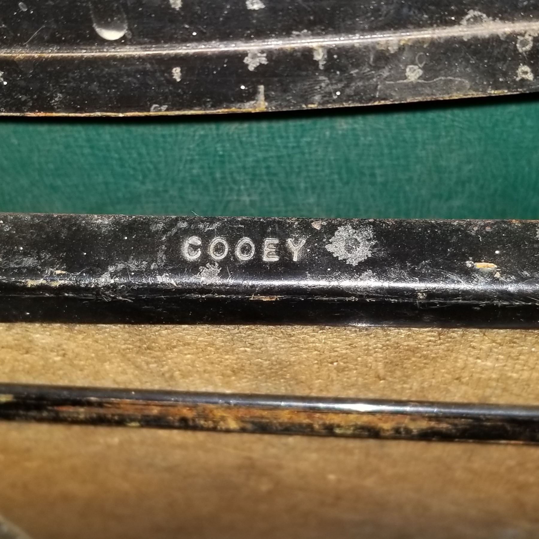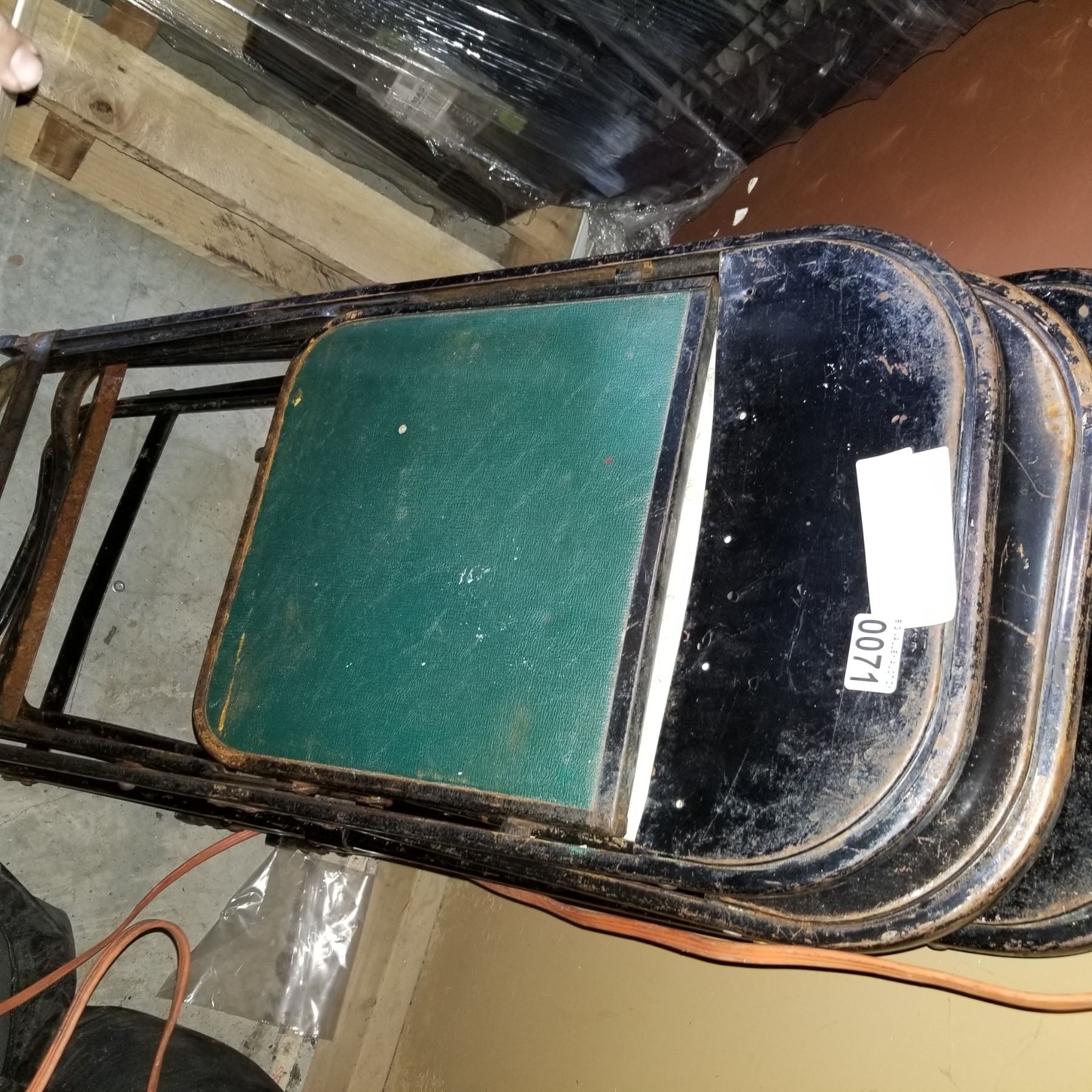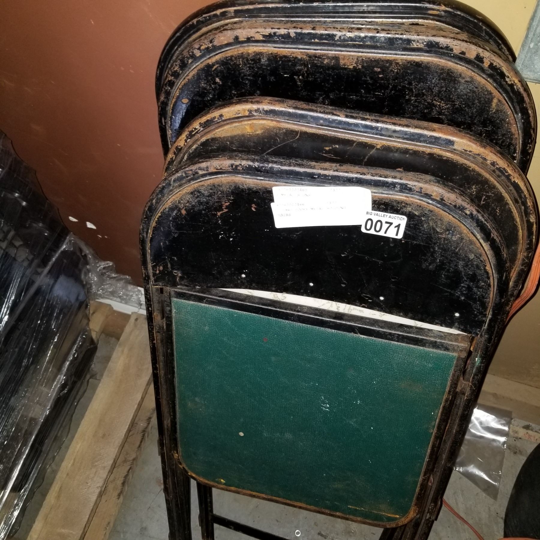 3 METAL SIGNS AND 5 1940 COOEY METAL FOLDING CHAIRS