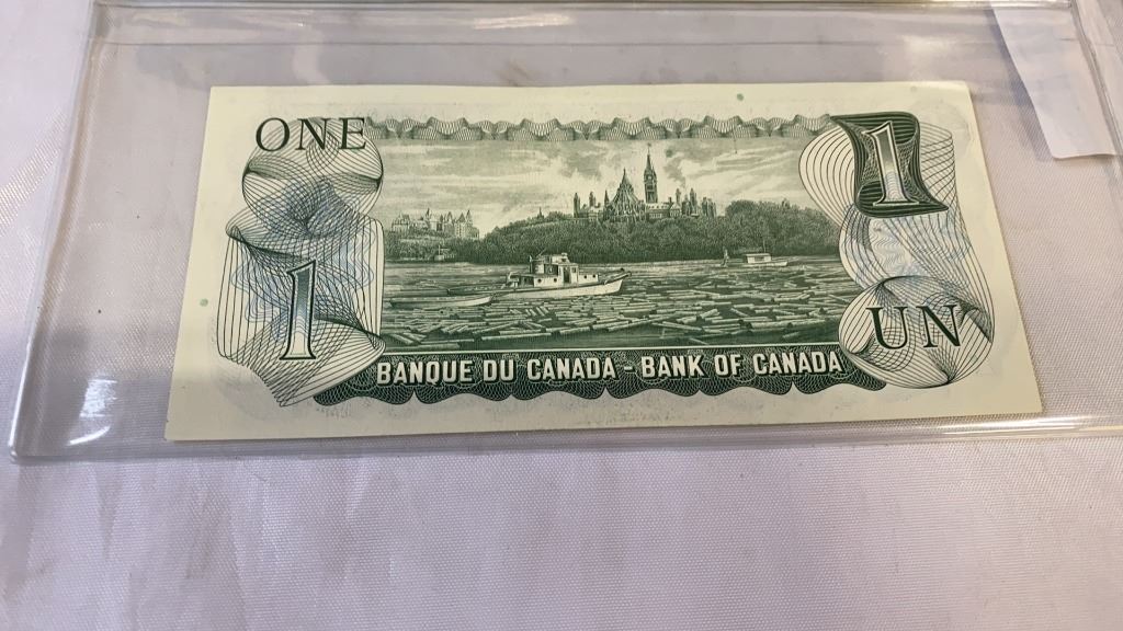 3 MINT 1973 CANADIAN 1 DOLLAR BILLS - 2 IN SEQUENCE, LAST ISSUE OF BILL