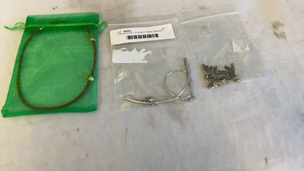 3 NECKLACES - PLAYBOY "MISS JANUARY", .925 STERLING SILVER CHOKER, AND RED LEATHER CHOKER WITH SKULL BEADS
