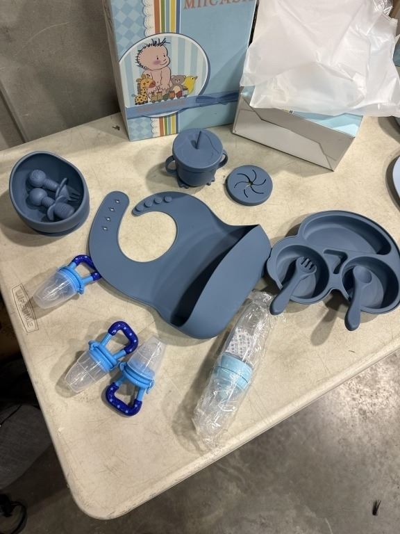 3 NEW BABY FEEDING SETS, SILICONE DISHWASHER AND MICROWAVE SAFE, ASSORTED COLOR AND VARIATIONS PER LOT