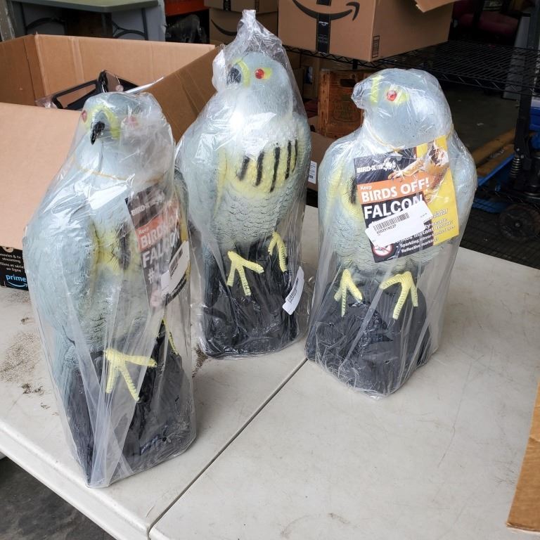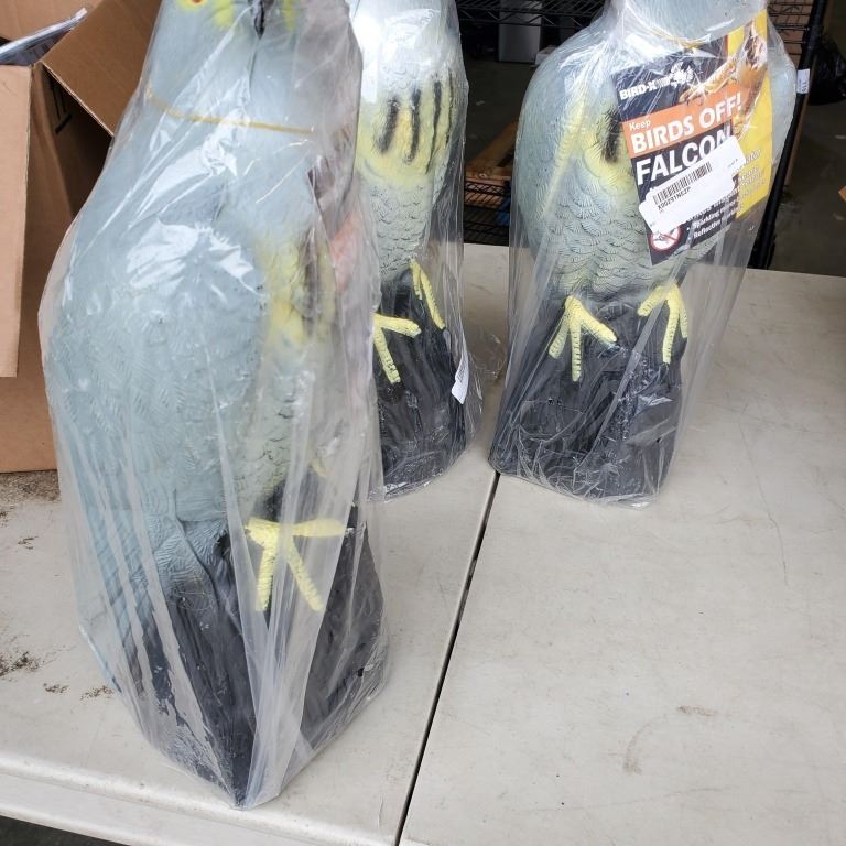 3 NEW BIRD DETTERANT FALCON STATUES FILLABLE