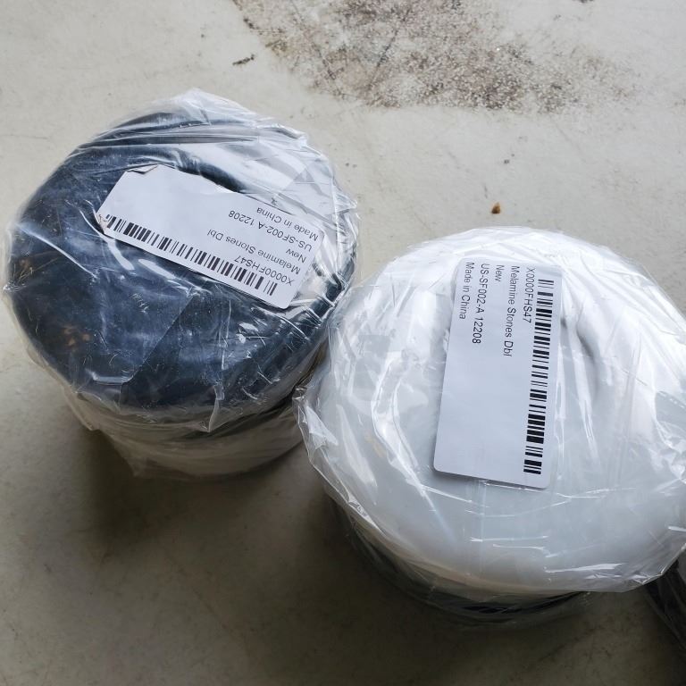 3 NEW BLACK AND WHITE SETS OF MELAMINE STONES RETAIL $150
