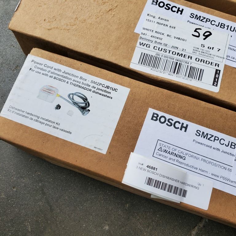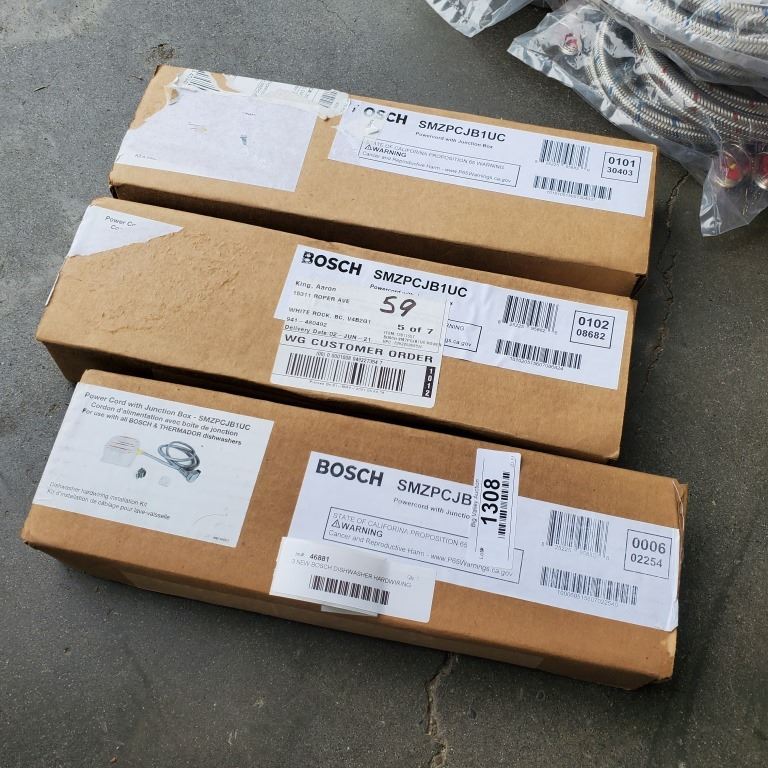 3 NEW BOSCH AND THERMADOR DISHWASHER HARDWIRING INSTALLATION KITS - POWER CORD WITH JUNCTION BOX FOR USE WITH ALL BOSCH AND THERMADOR DISHWASHERS