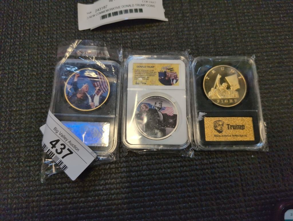 3 NEW COMMEMORATIVE DONALD TRUMP COINS WITH CASES