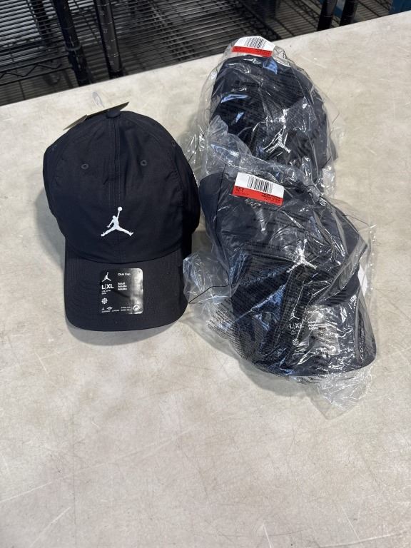 3 NEW JORDAN JUMPMAN CLUB CAP, SIZE L/XL BLACK WITHWHITE LOGO