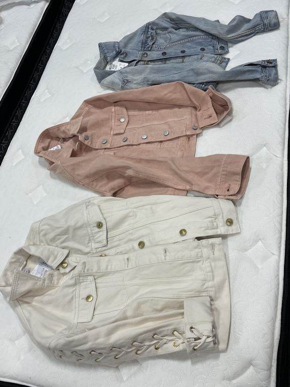 3 NEW LADIES DEMIN JACKETS - 2 X-SMALL AND 1 SMALL RETAIL $145