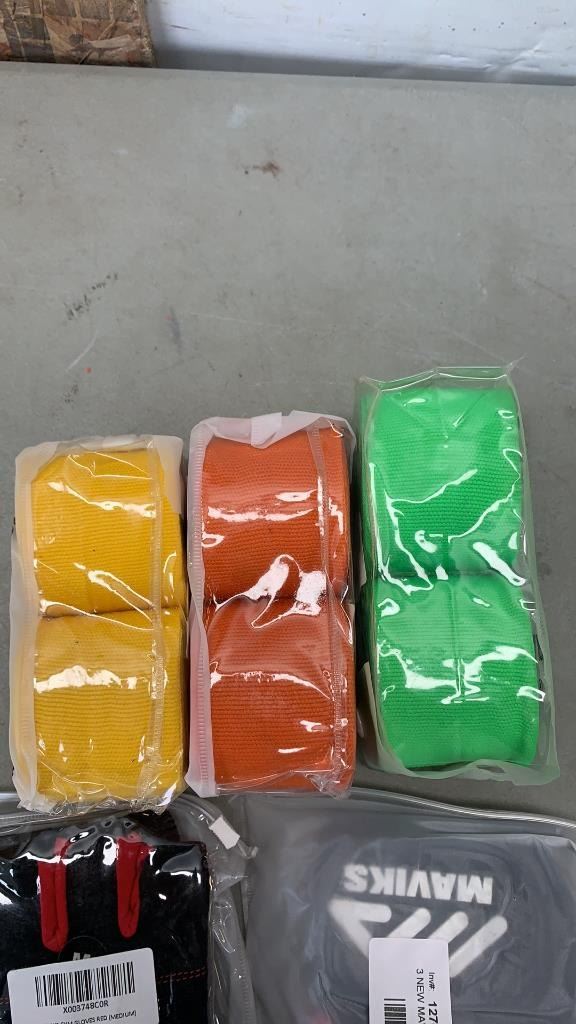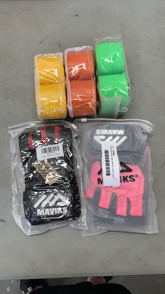3 NEW MAVIKS HAND WRAPS AND 2 NEW PAIRS MAVIKS WORK OUT GLOVES - RETAIL $199