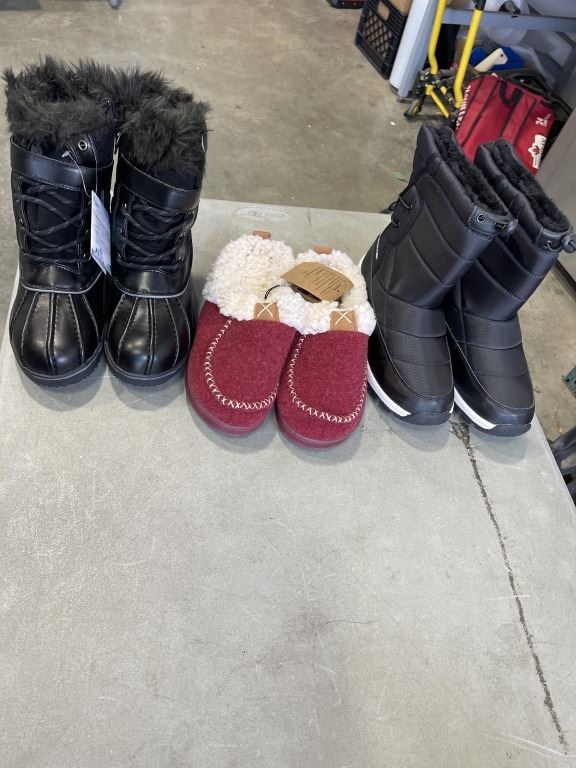 3 NEW PAIRS OF WOMENS SIZE 6 BOOTS AND SLIPPERS