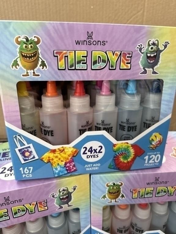 3 NEW WINSONS TIE DIE KITS, 167PC EACH, 24 DIES EACH, RETAIL $30 EACH ( $90 VALUE )