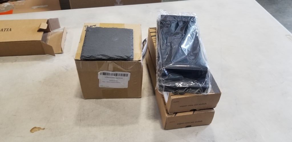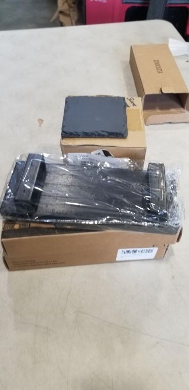 3 NEW WOODEN BATHROOM TRAYS AND SLATE COASTER SET