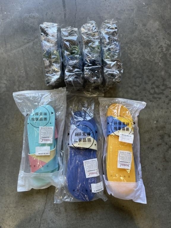 3 PAIRS OF NEW SLIPPERS AND 48 NEW HAIR CLIPS