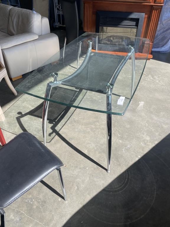 3 PC MODERN GLASS AND CHROME DINNETTE SET
