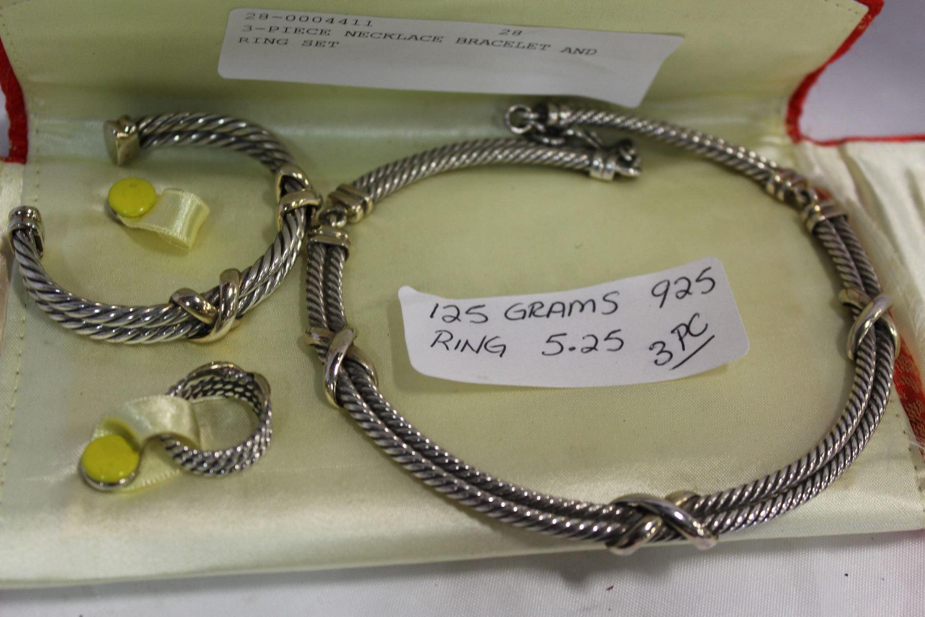 3-PIECE 925 STERLING NECKLACE BRACELET AND RING SET, 125 GRAMS