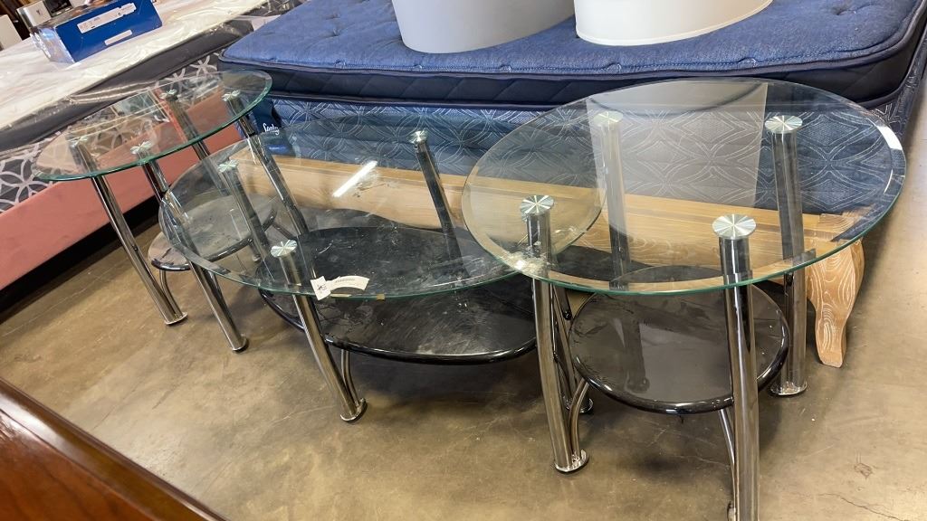 3 PIECE GLASSTOP COFFEE TABLE SET